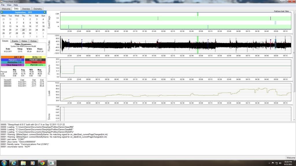 Hello all, Hopefully there is somebody out there fluent in the Sleepyhead software. Just got a remstar PRO w/ c-flex machine and actually only used it one night. I do see data in the SD card (path is D:\P-Series\P040894876962\p0\), I have some files such as '0000000004' which is 110 kb. However, whe...