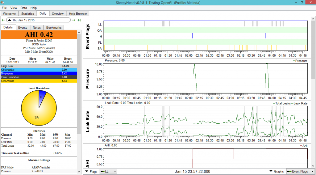 | Additional Comments: Sleepyhead software. Just changed from PRS1 BiPAP Auto DS760TS |